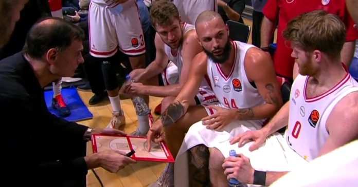 Ο Εβάν Φουρνιέ πήρε την πρωτοβουλία σε ένα τάιμ άουτ του Ολυμπιακού, να εξηγήσει στους συμπαίκτες του τι έπρεπε να κάνουν με βάση την αντιμετώπιση της Παρτίζαν και δικαιώθηκε στην αμέσως επόμενη κατοχή στο παρκέ!