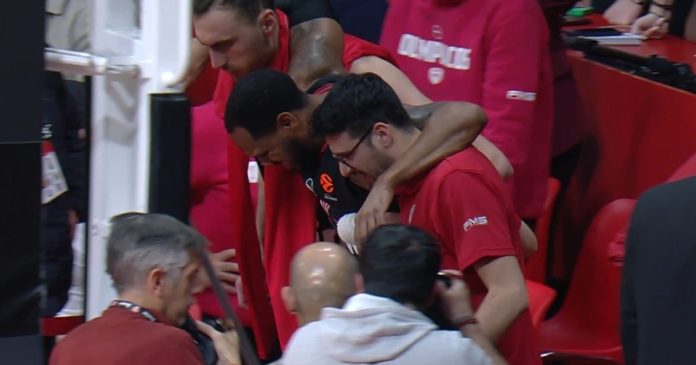 Σε μια προσπάθειά του πέντε λεπτά πριν από το τέλος του αγώνα, ο Αμερικανός γκαρντ στραβοπάτησε και γύρισε τον αστράγαλο του αριστερού του ποδιού.