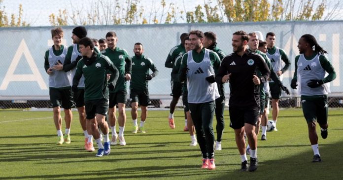 Οι «πράσινοι» έκαναν προθέρμανση, συνέχισαν με rondo και ασκήσεις κυκλοφορίας μπάλας ενώ ολοκλήρωσαν με τακτική και παιχνίδι. Ο Μίλος Πάντοβιτς έφτασε ακόμα πιο κοντά στην επιστροφή του, μετά την θλάση που είχε υποστεί στον αγώνα Κυπέλλου κόντρα στην Καβάλα, αφού κατάφερε να ακολουθήσει μέρος της προπόνησης.